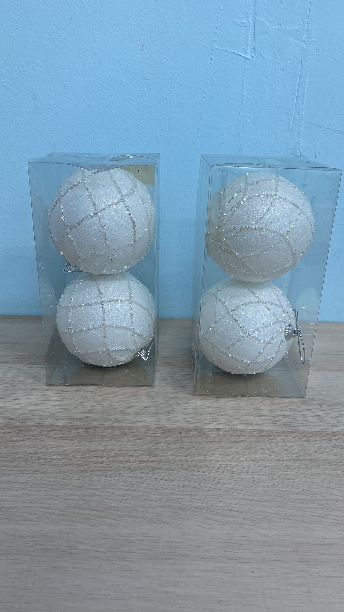 1,00 €#03962instockDecorazione Di Natale Set 2 Palle Grandi Bianche Glitterate Da Appendere all’albero