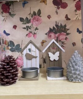 Porta Candela in Legno a forma di casetta 10cm